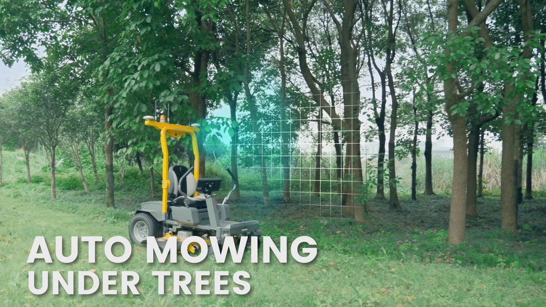 The mower equipped with our new fusion technology to perform unmanned operations even in areas with no satellite signal, such as under trees or near tall buildings.