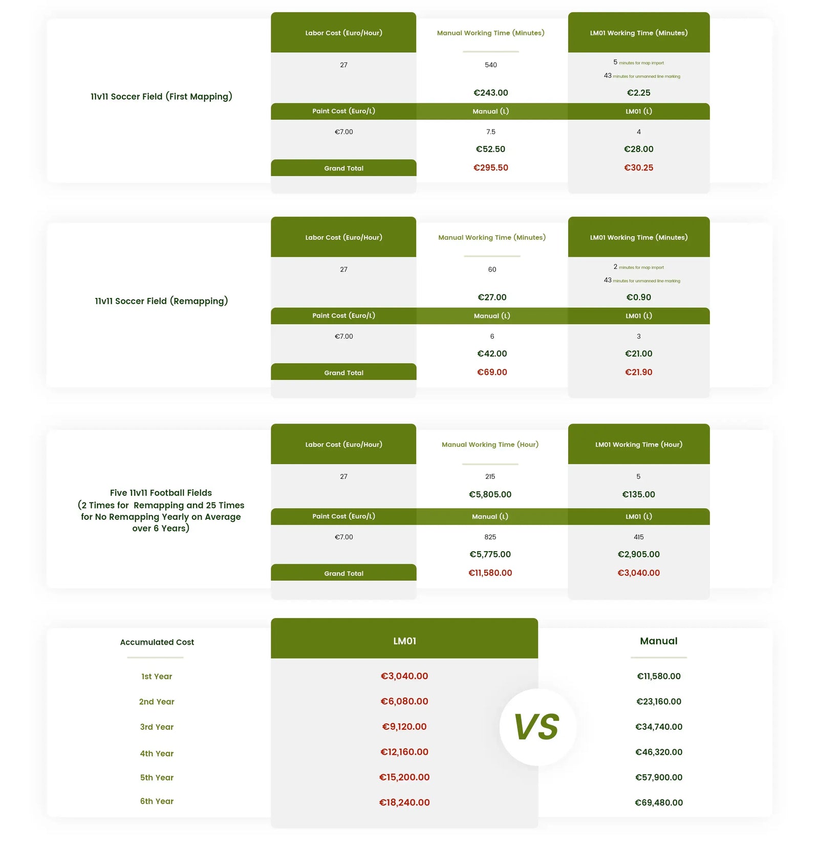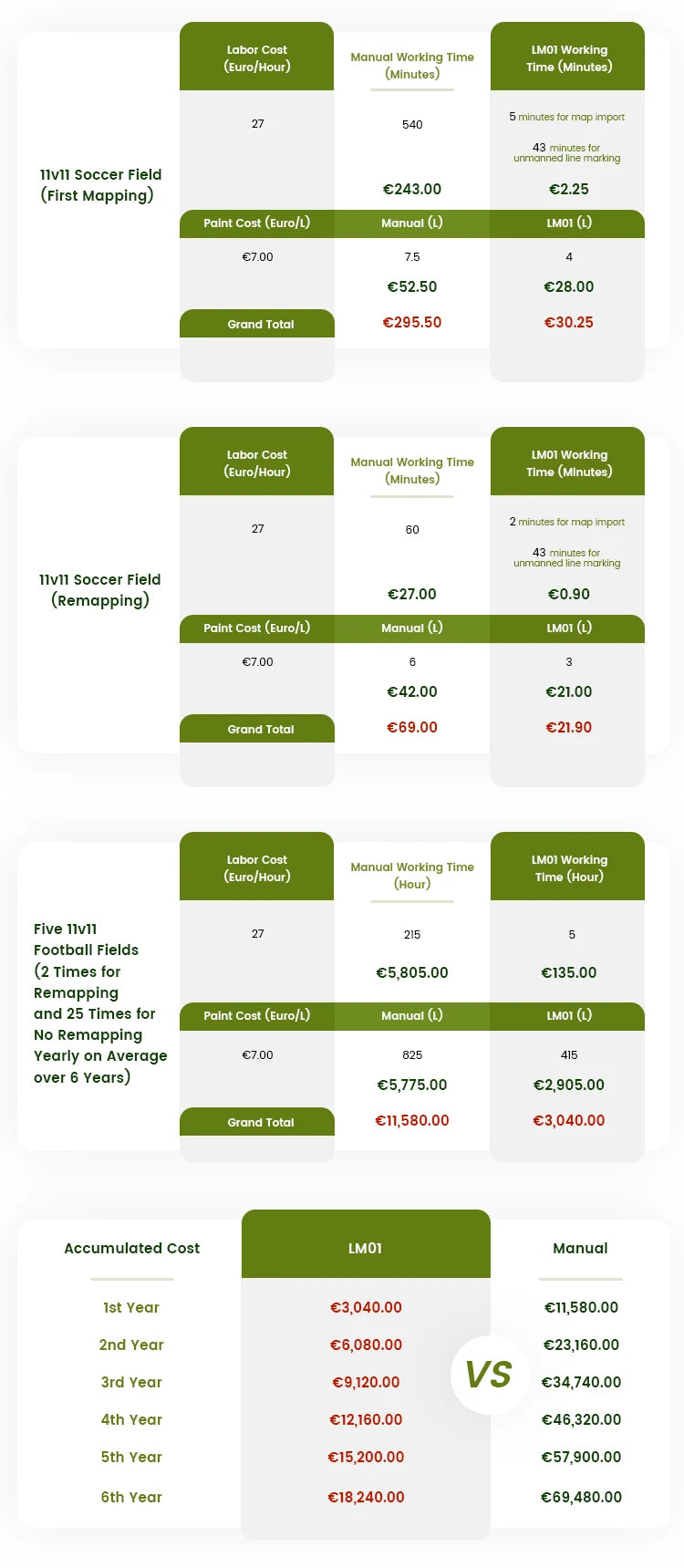 Perfect sports field lines don't happen overnight. It takes high precision marker to make your field the best it can be. The LM01 comes standard with a top-class navigation system that makes precise lines marked in minutes with an ultra-long battery life. With customizable maps and lines, this marking robot lets you get the results both players and spectators can enjoy in any soccer, rugby, and lacrosse field.