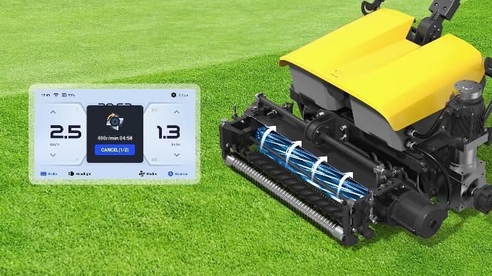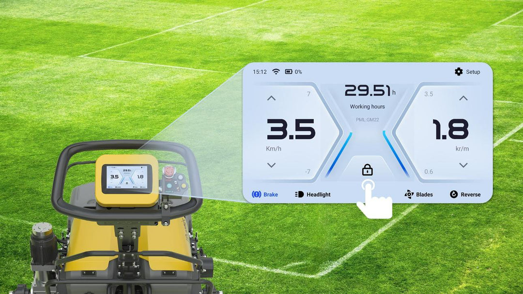 You can easily adjust the travel speed and mowing frequency, as well as access the sharpening or mowing functions.