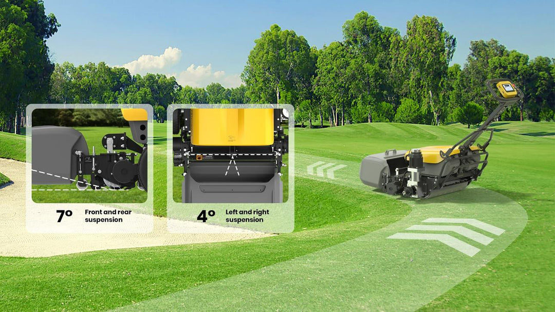 Enjoy premium lawn care with the FJD GM22 Electric Walk-behind Greens Mower. This eco-friendly mower runs on 100% electric power and can cover up to 7000㎡ on a single charge. With its four-direction floating head, one-screen operation, and one-click back-lapping feature, you can mow your lawn like a pro with ease and efficiency.